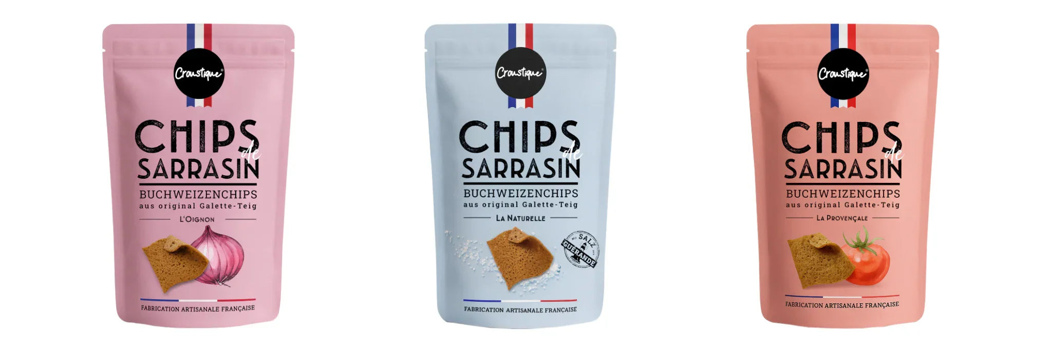 Unsere Chips de Sarrasin sind aus Buchweizen und inspiriert von der traditionellen Galette aus der Bretagne - seit Jahrhunderten geliebt, jetzt neu interpretiert. Ideal zum Dippen, Snacken oder als knusprige Beilage.